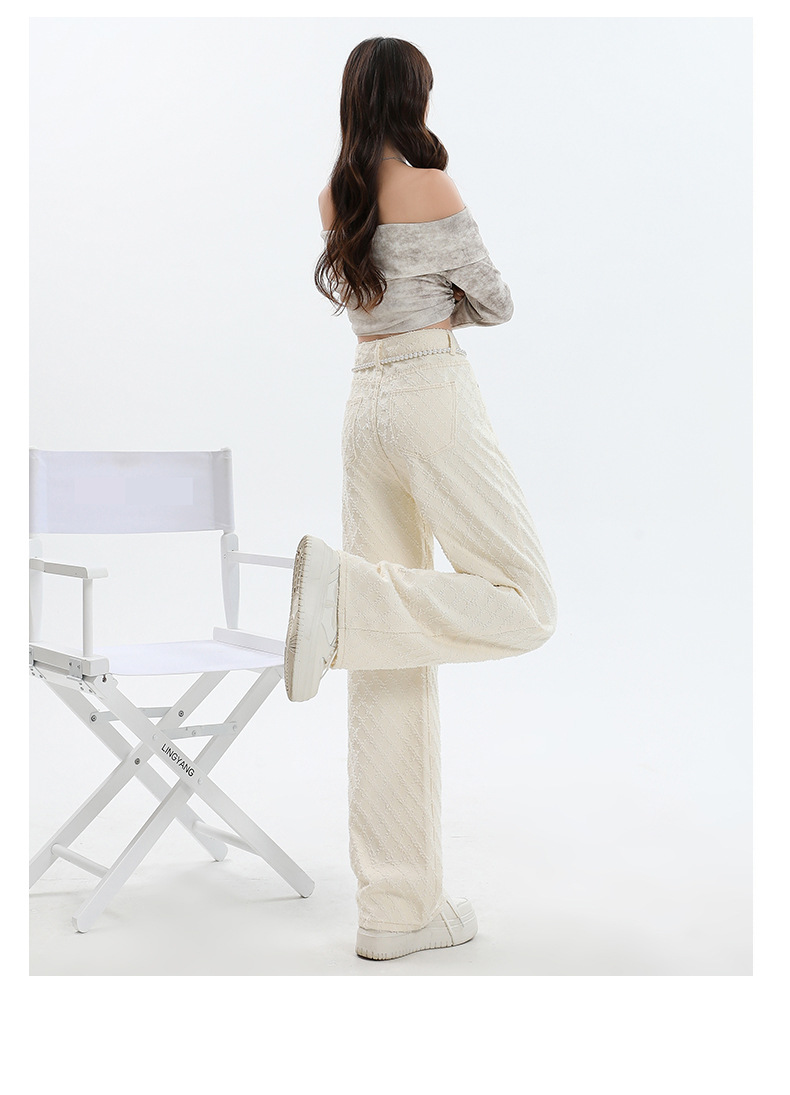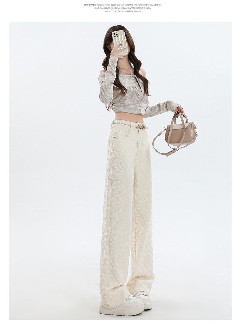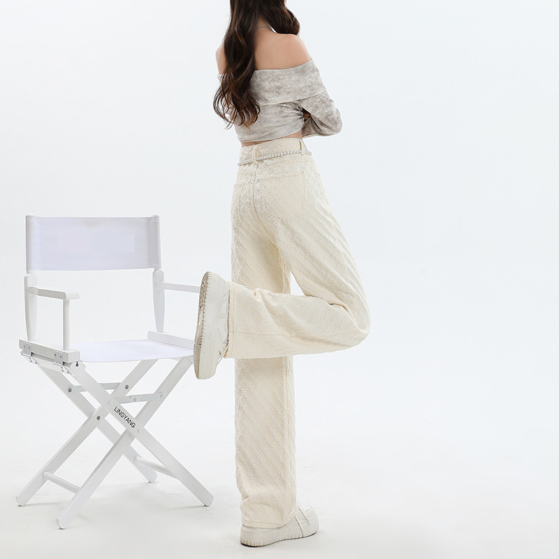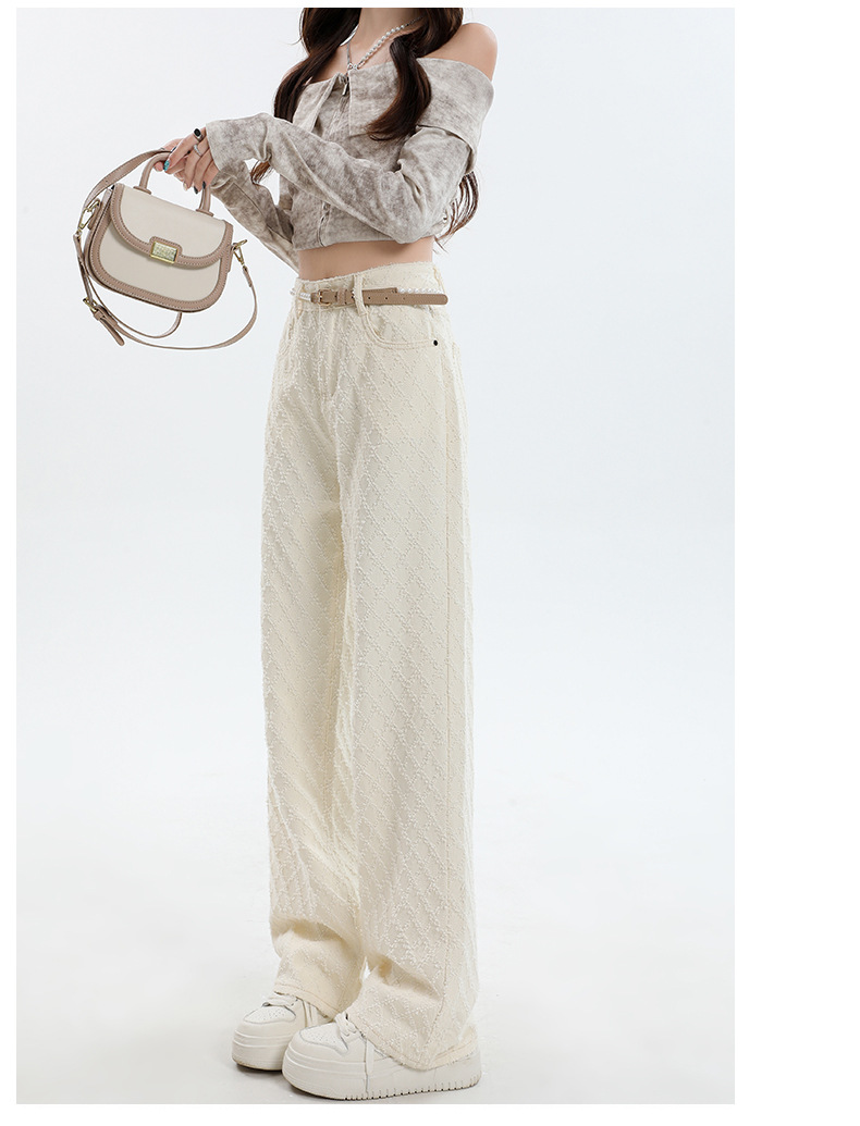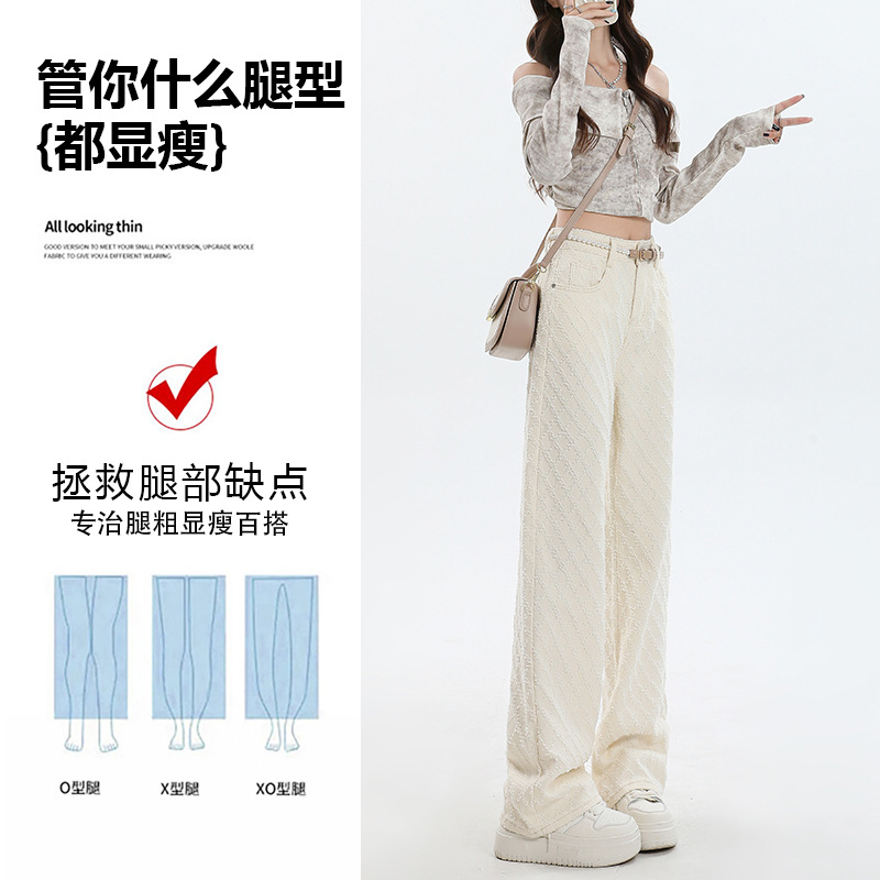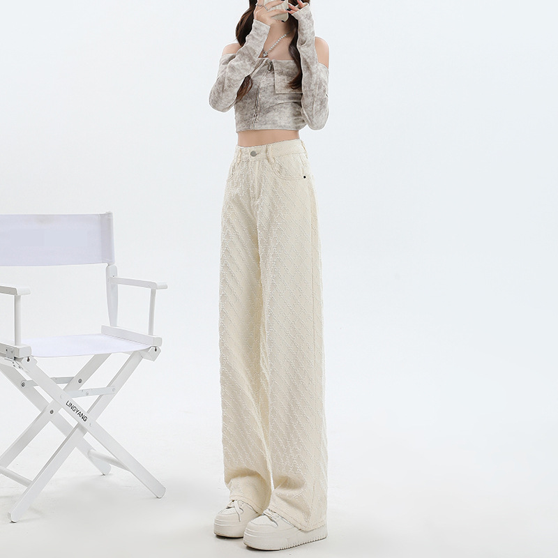 Weiße Hose mit hoher Taille und weitem Bein für Frauen 2024 Winter neuer Stil lose Jacquard stoff Denim Hose mit geradem Bein