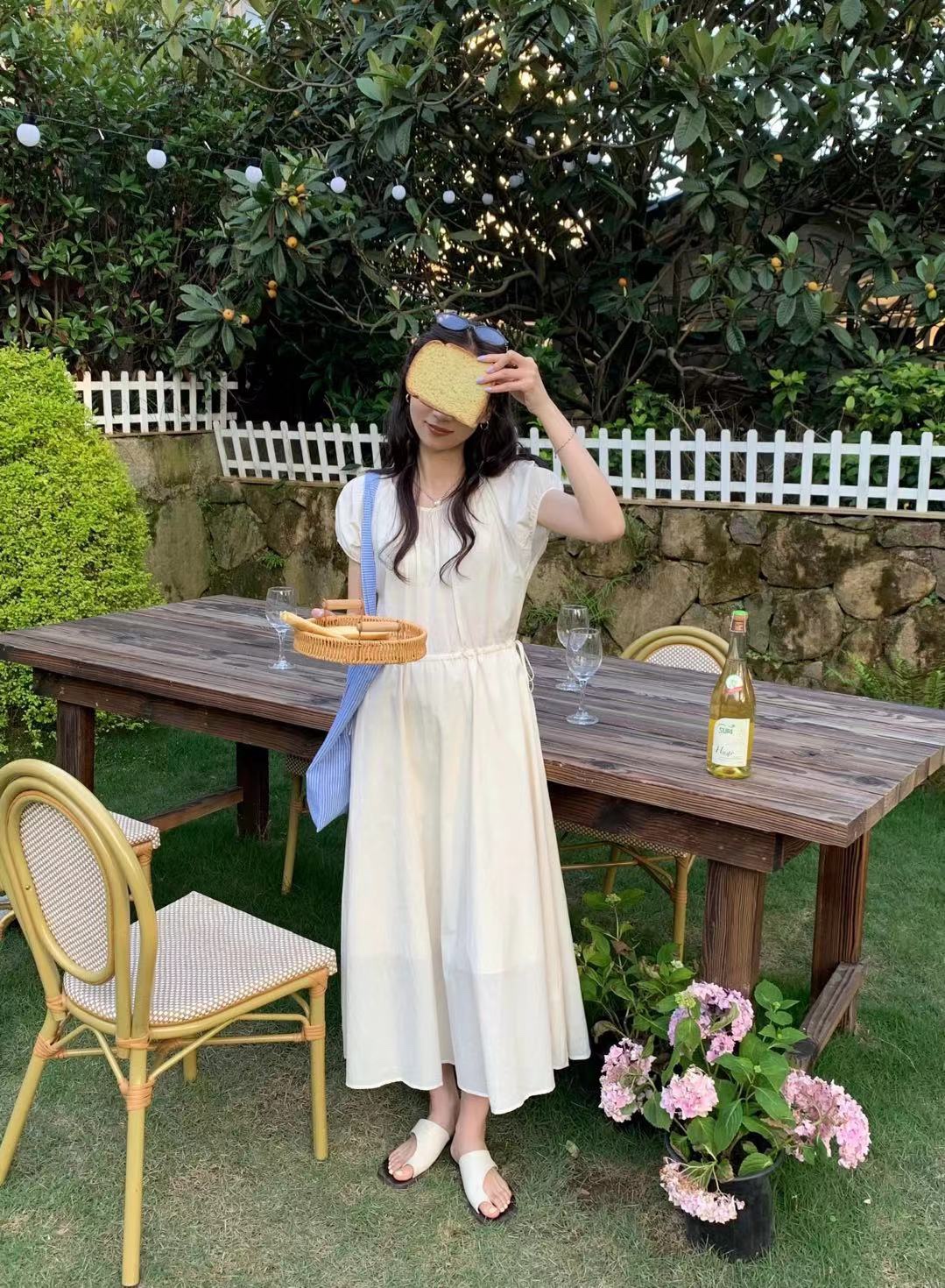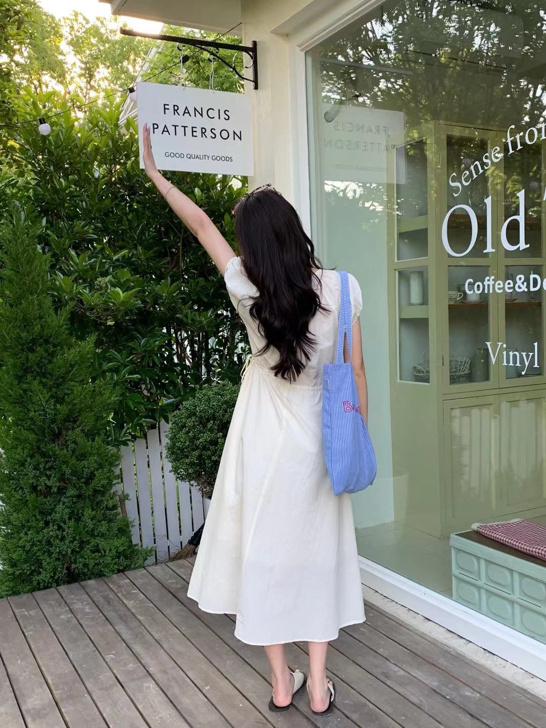 MMC Kleid Damen Sommer Puff ärmel Design Sinn High-End Taille dünn ein Wort lang Rock