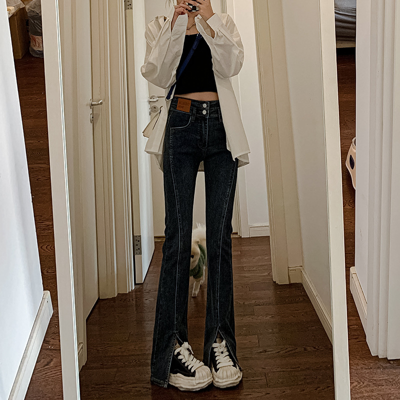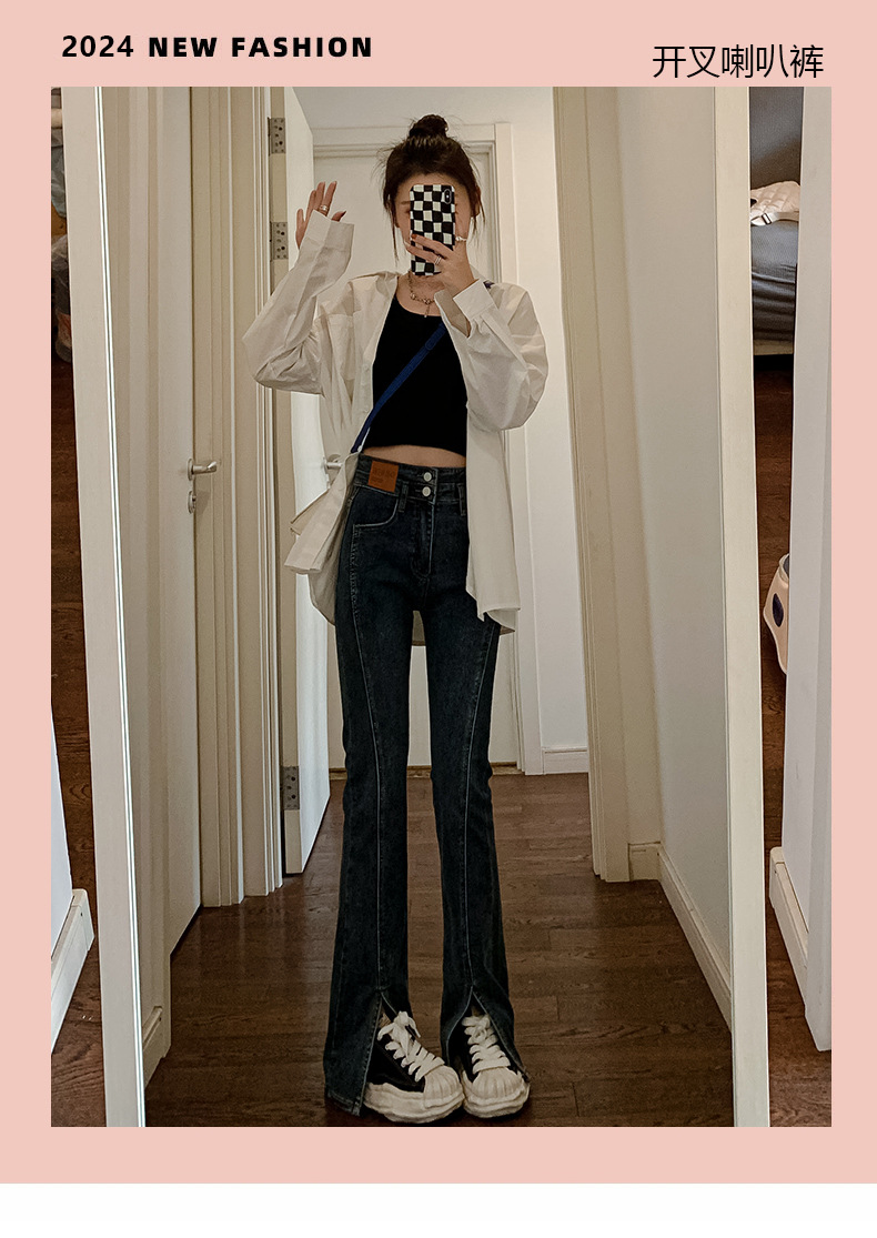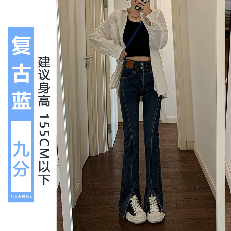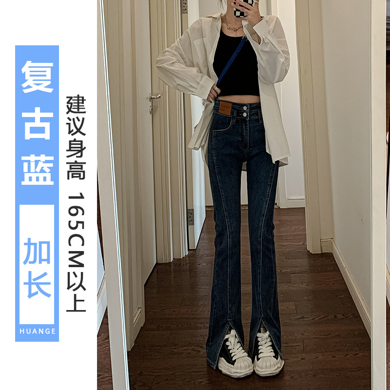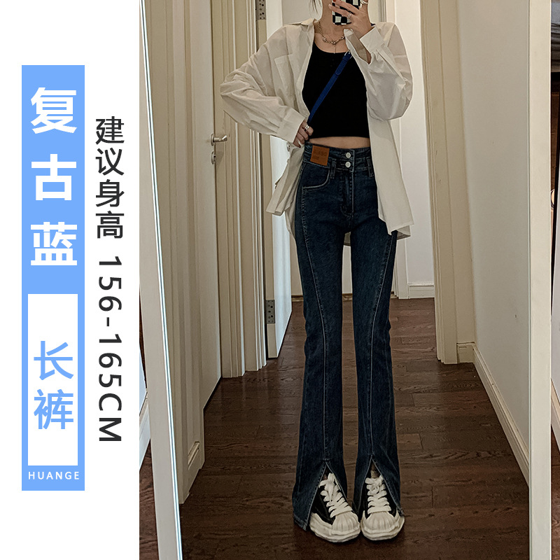 Amerikanische Retro blaue Micro-Hose Jeans Damen Herbst und Winter hohe Taille schlanke schlanke, schlanke, nicht aufgeblähte, lange, ausgestellte Hosen