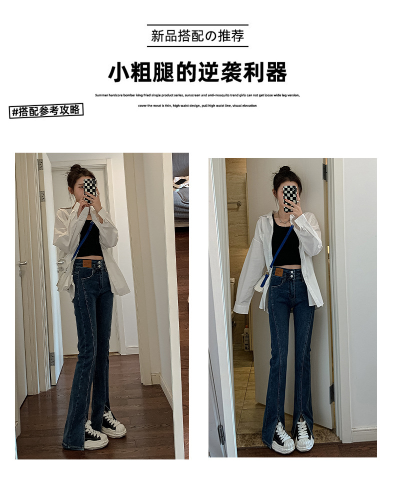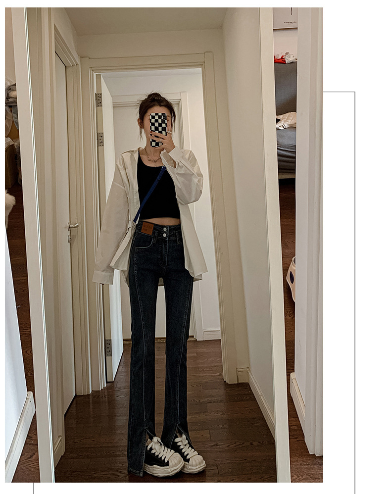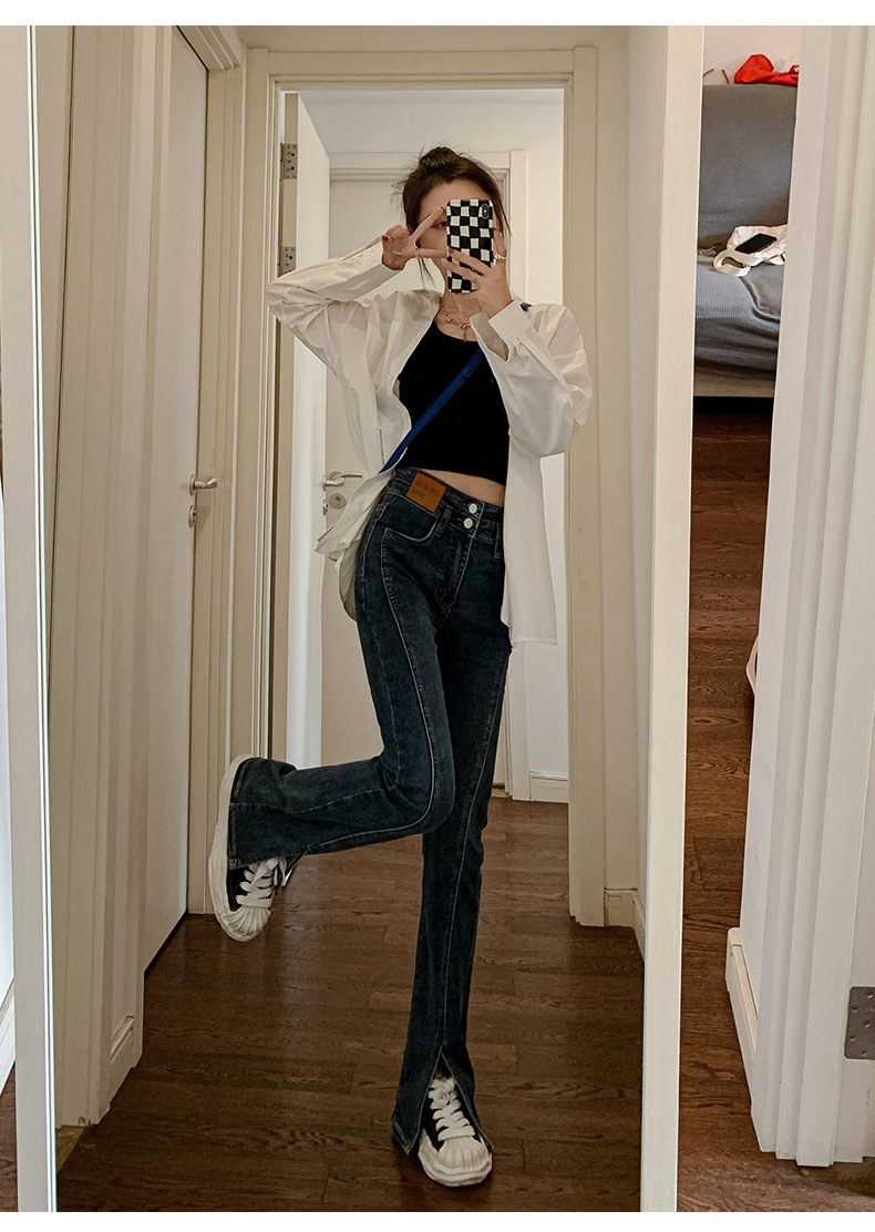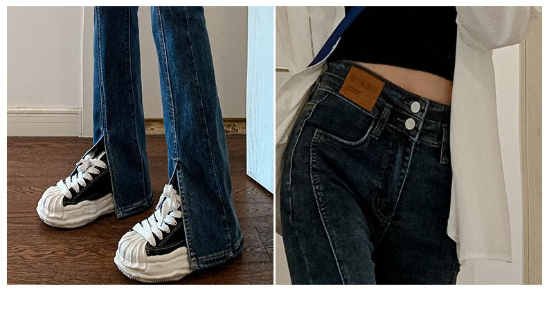 Amerikanische Retro blaue Micro-Hose Jeans Damen Herbst und Winter hohe Taille schlanke schlanke, schlanke, nicht aufgeblähte, lange, ausgestellte Hosen
