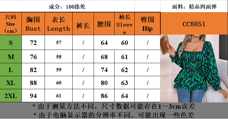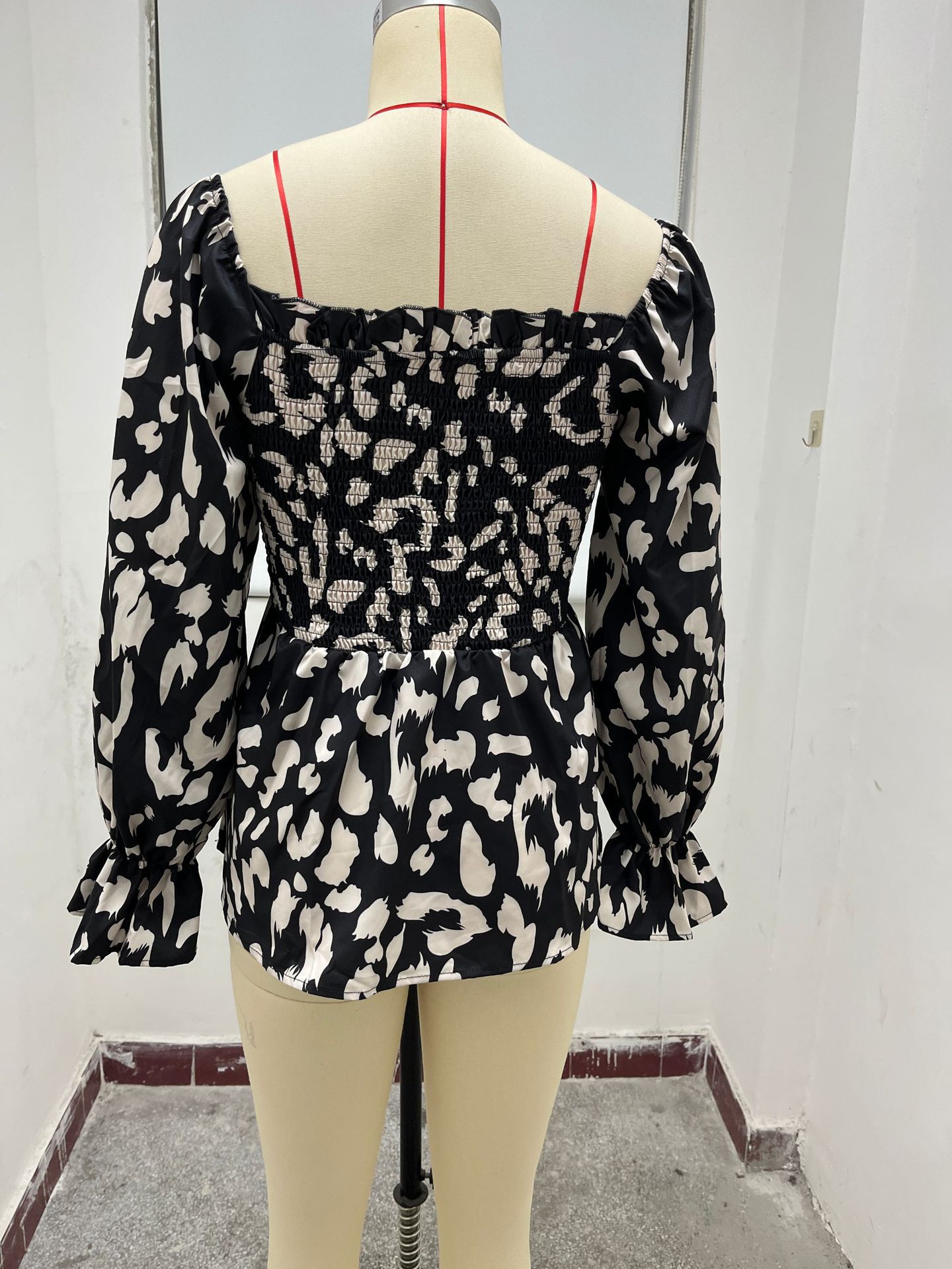 2024 Herbst und Winter Europäische und amerikanische lässige Holz ohren mit quadratischen Kragen, Langarm-Chiffon hemd mit Leoparden muster, Amazon grenz überschreitende Damen bekleidung