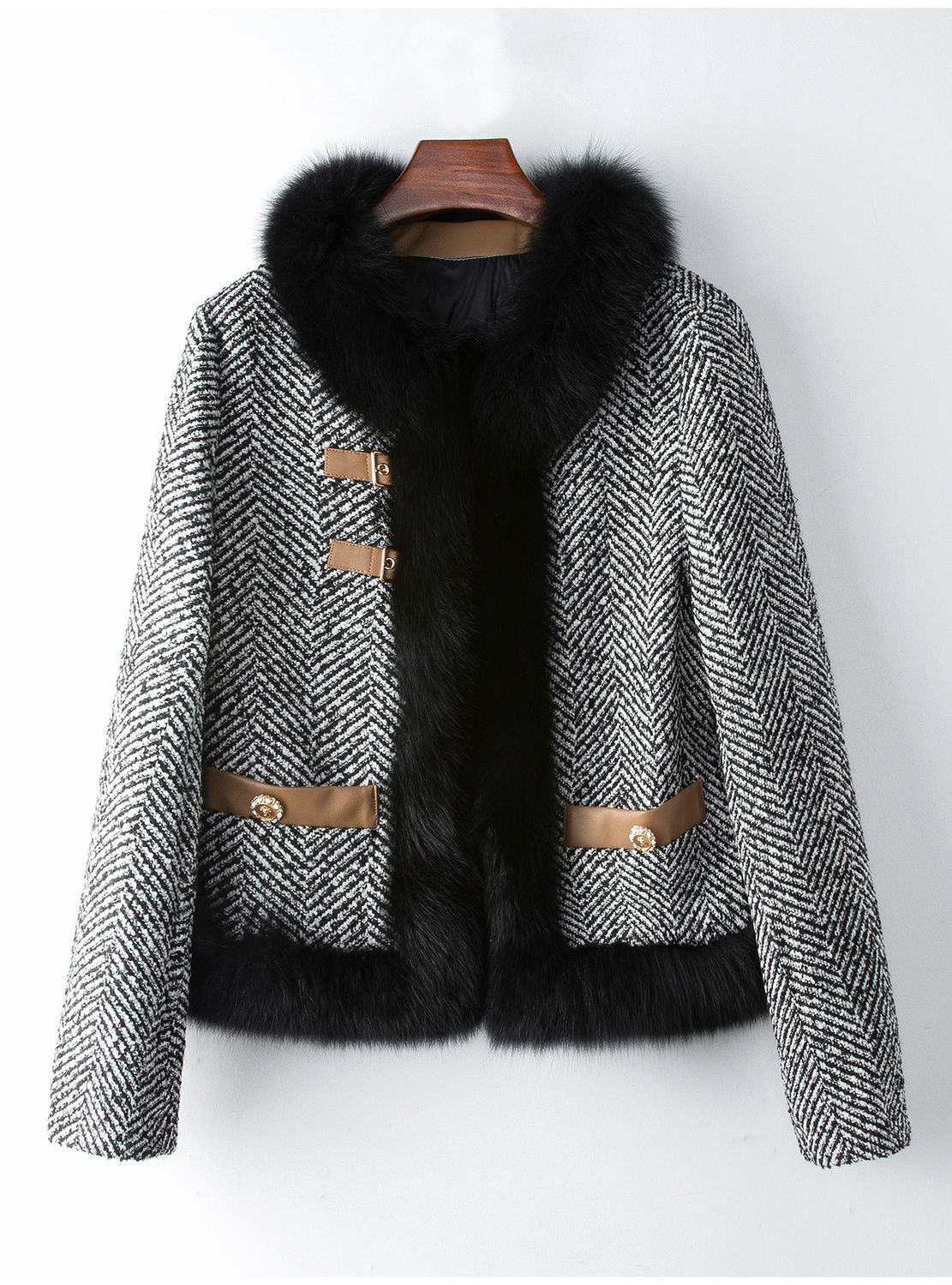 Eine kleine Menge Kleidung Haining 2024 Winter neue Woll jacke Damen Fuchs Pelz kragen kleine duftende Goose Samt Kleidung