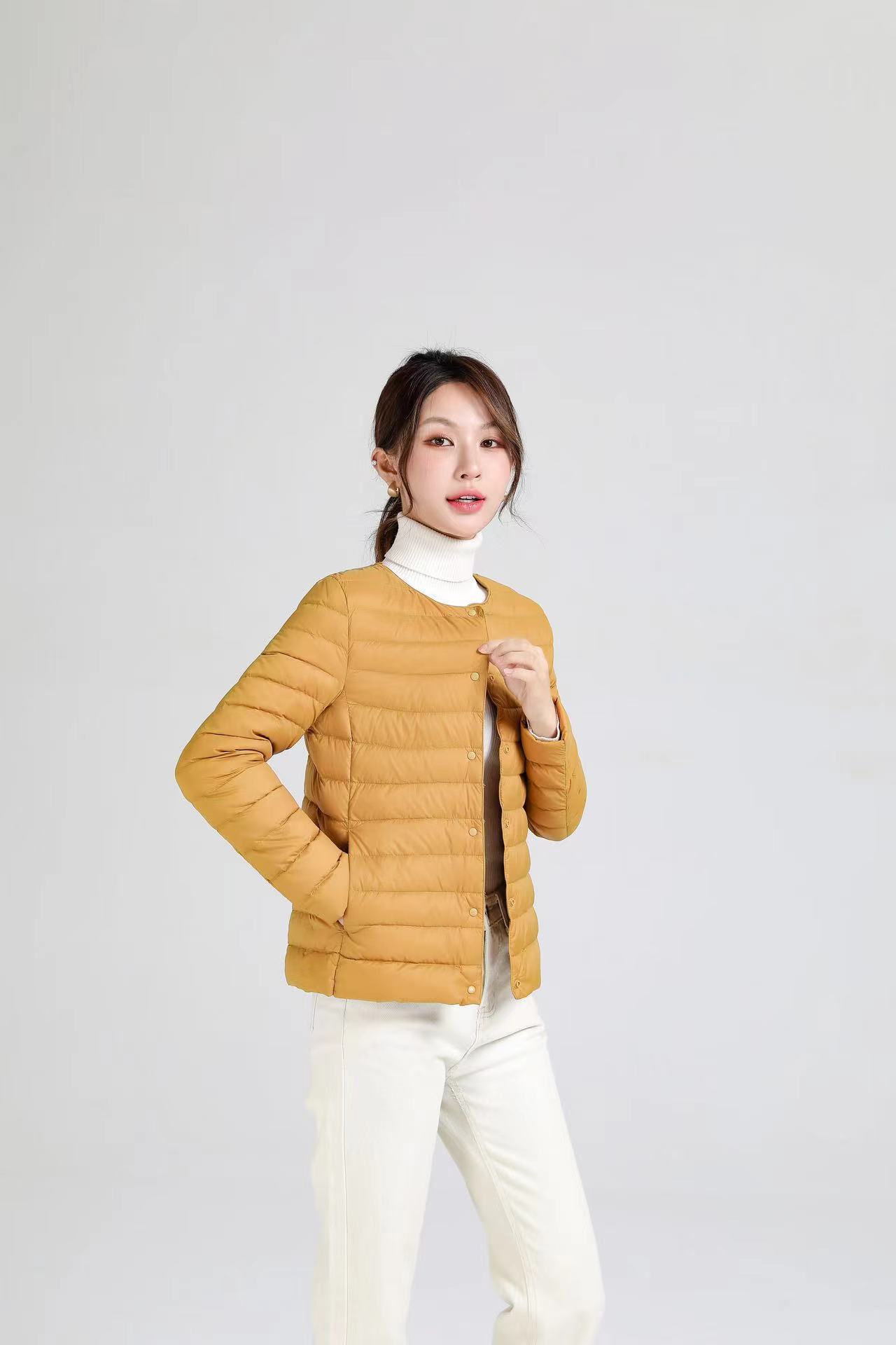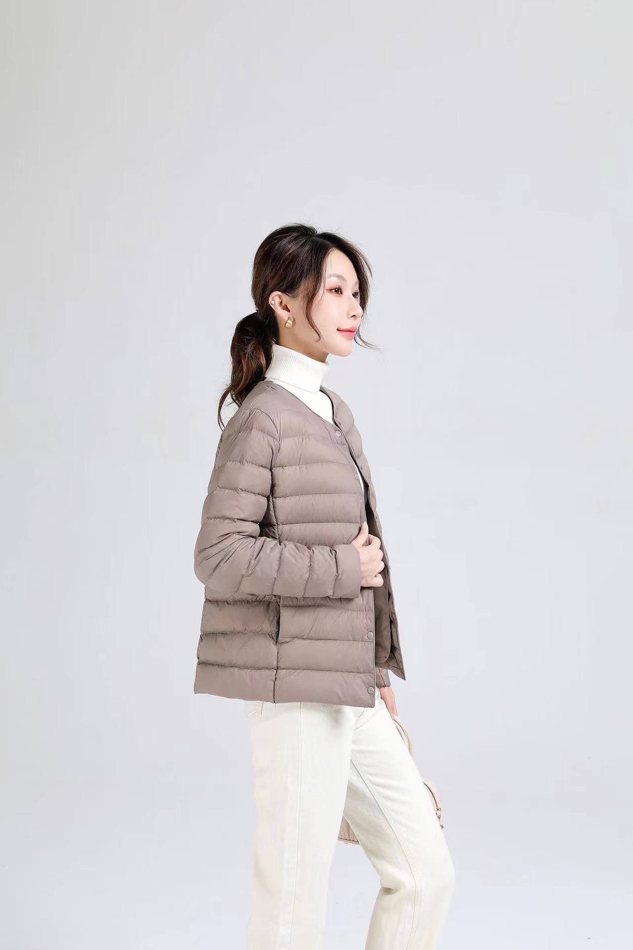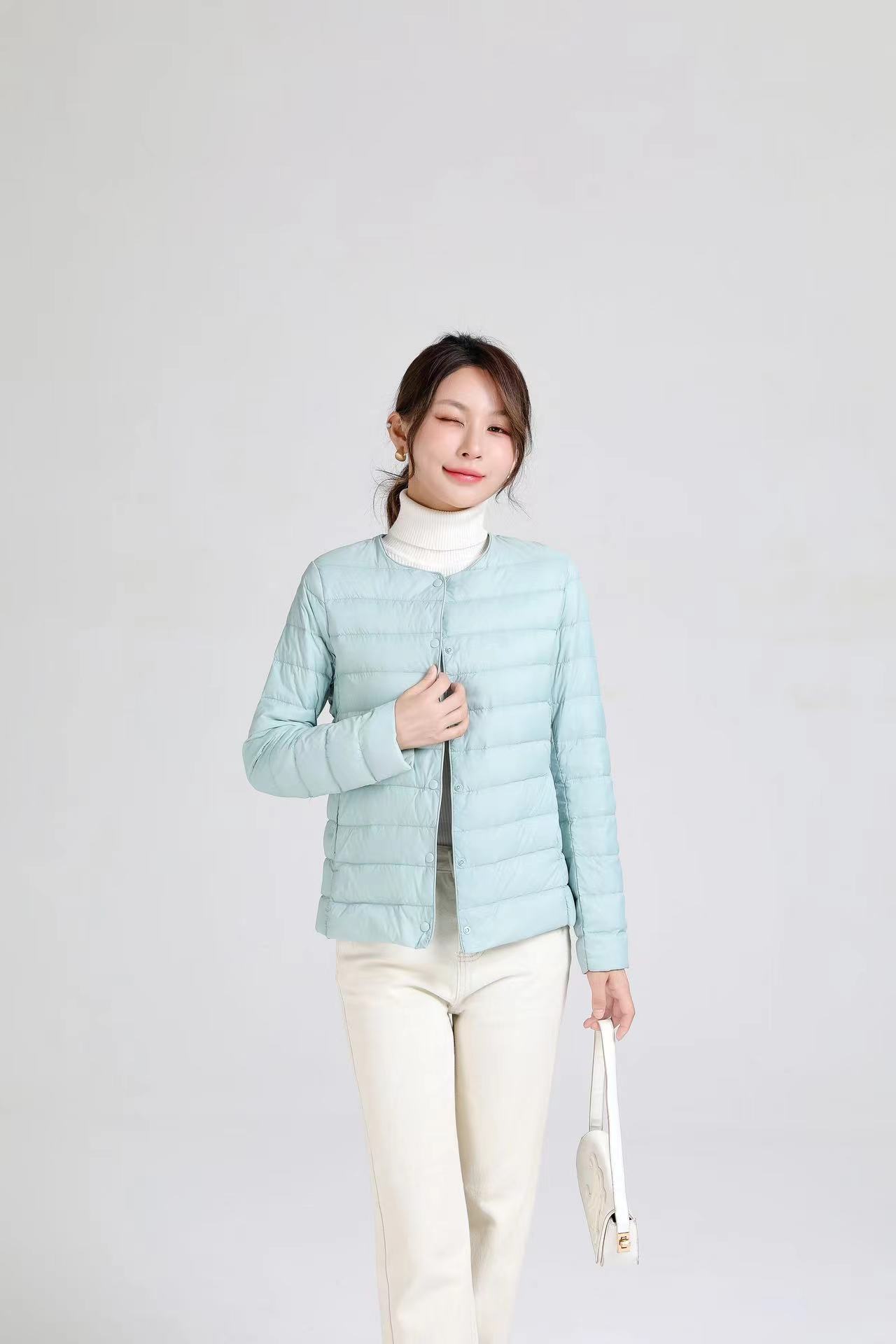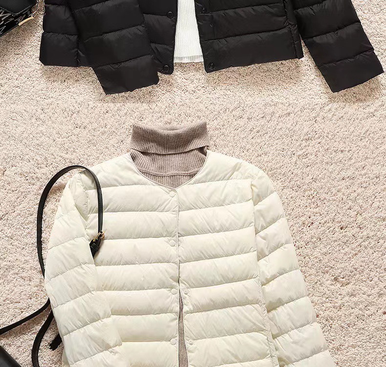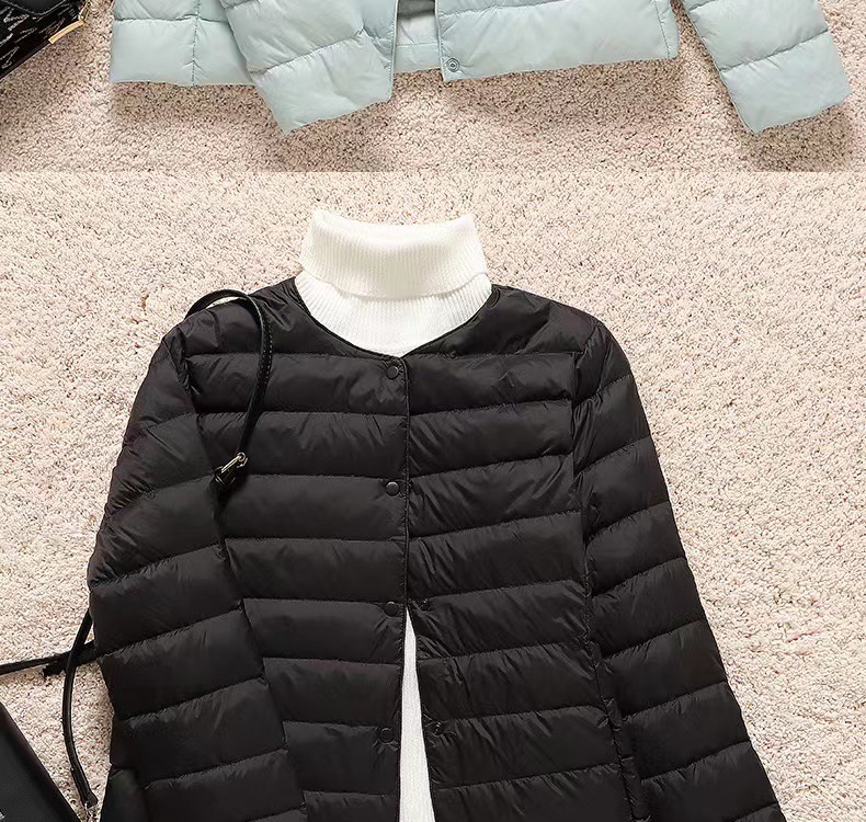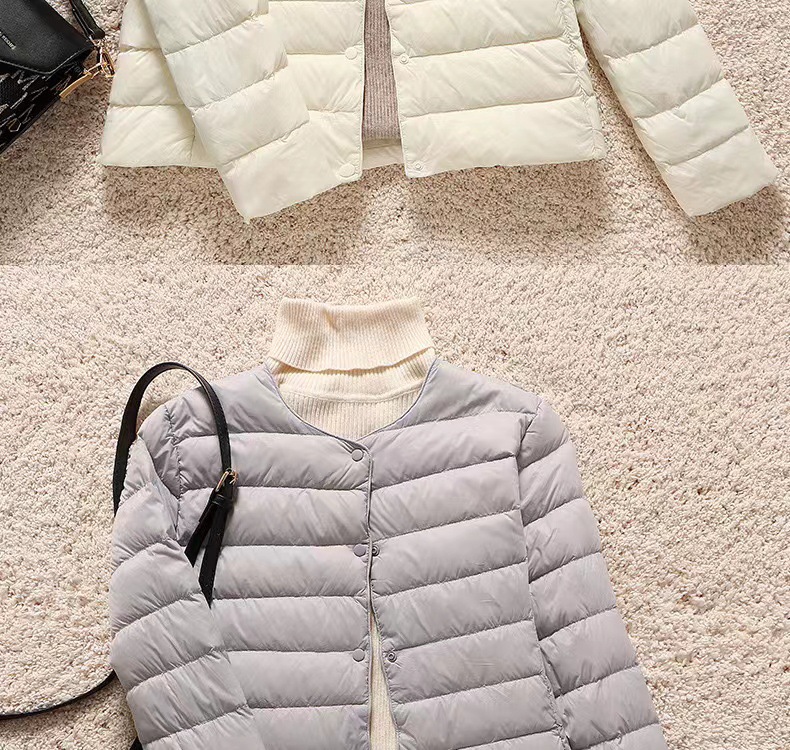 2024 neue Anti-Saison leichte und dünne Daunen jacke mit Rundhals ausschnitt für Frauen, warmer Liner, kurzer, großer Mantel, Herbst-und Winter frauen, kragen los