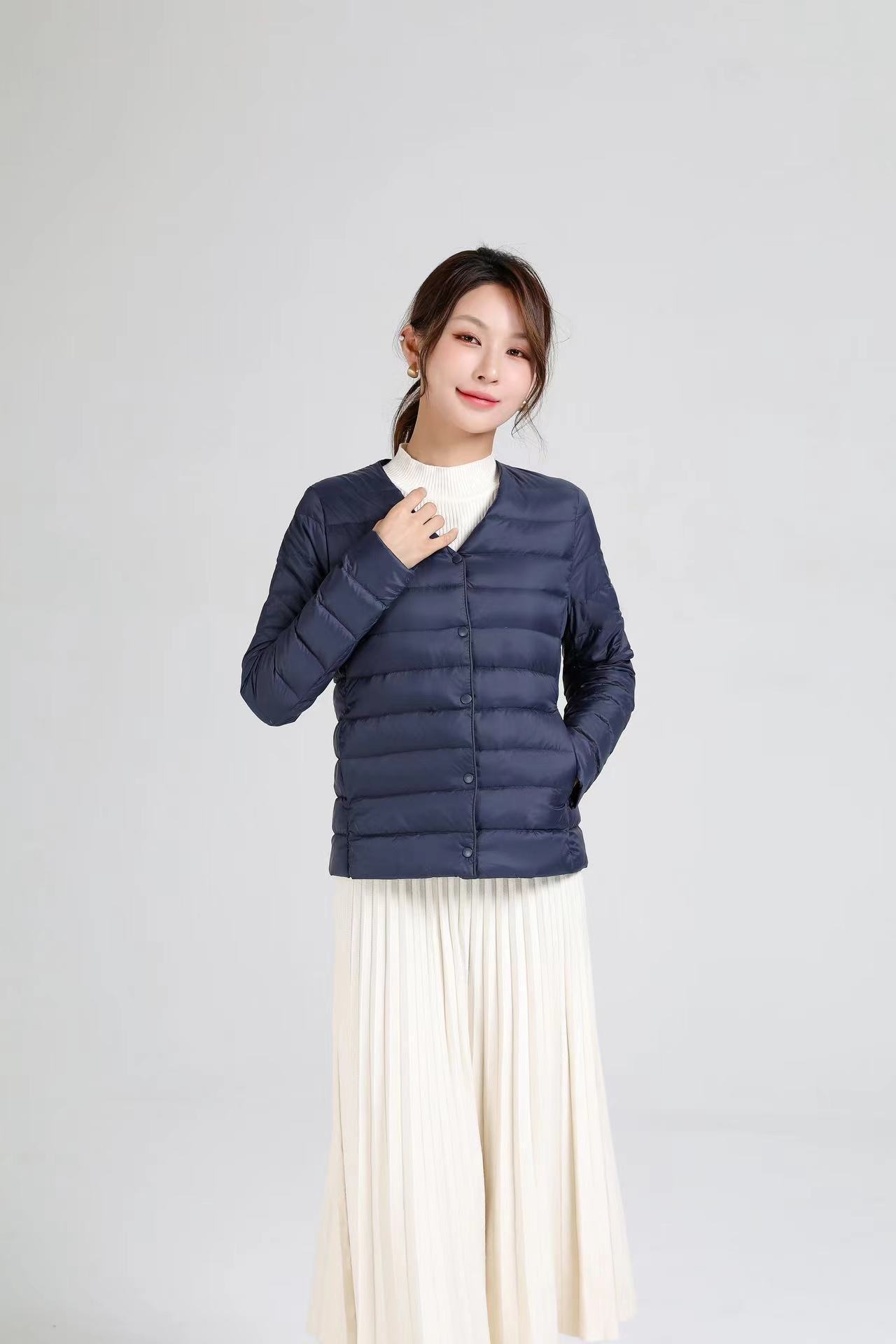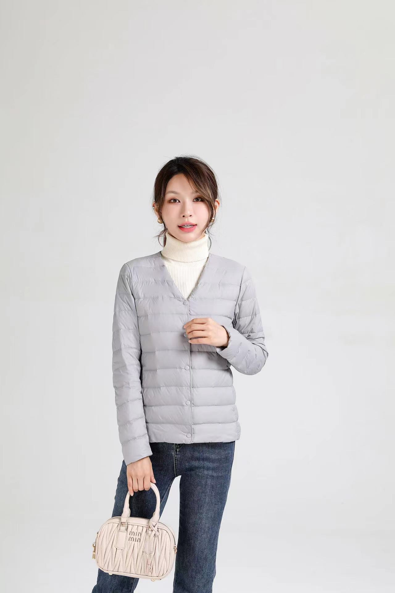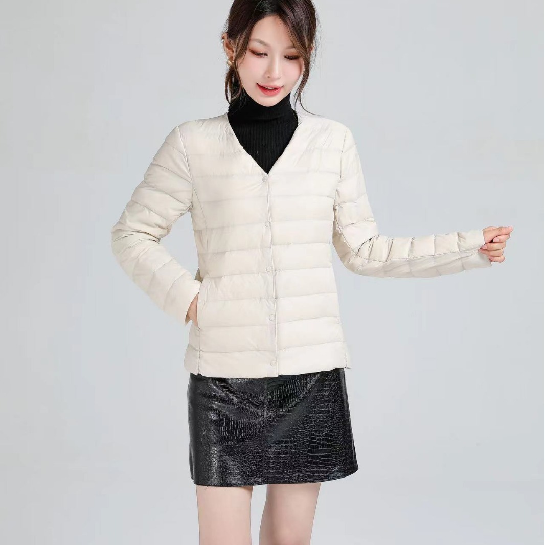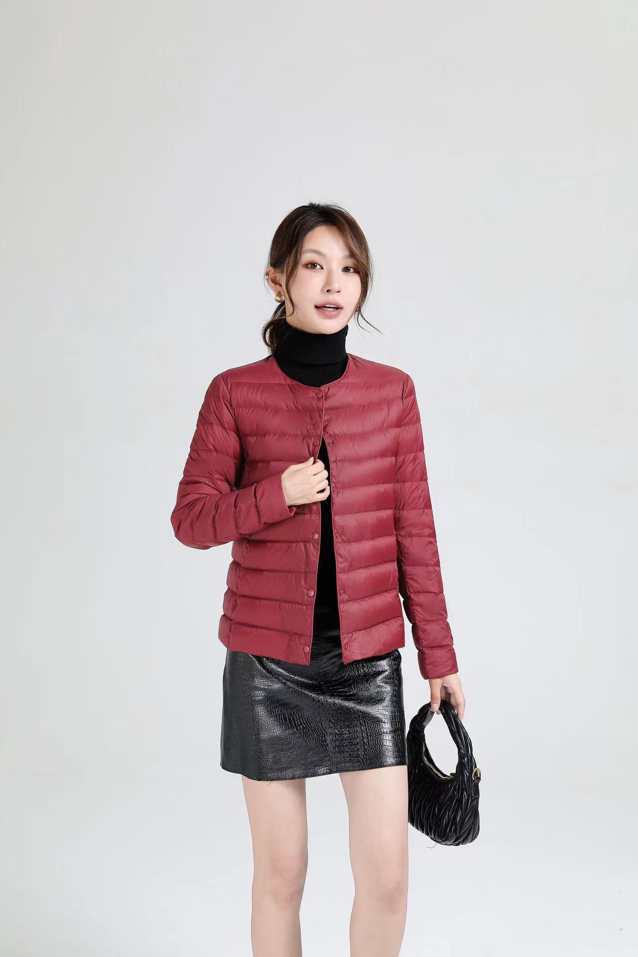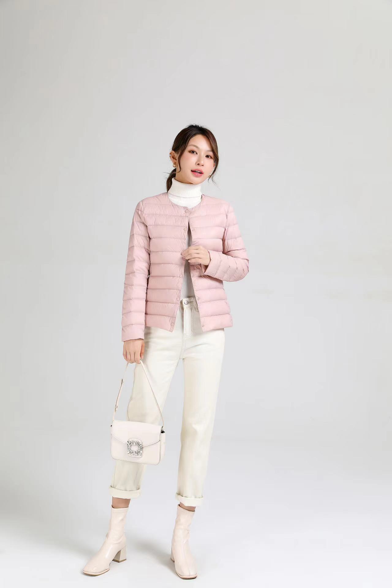 2024 neue Anti-Saison leichte und dünne Daunen jacke mit Rundhals ausschnitt für Frauen, warmer Liner, kurzer, großer Mantel, Herbst-und Winter frauen, kragen los